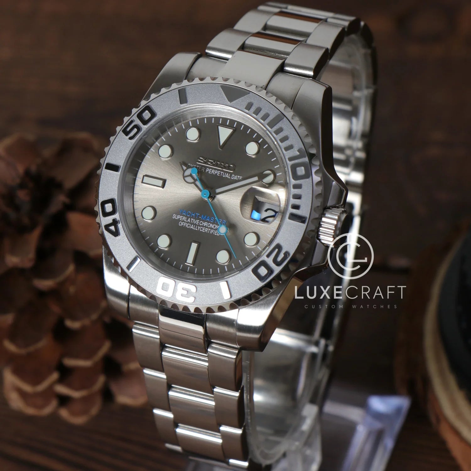 Inspirado en el modelo Yacht-Master, junto con el alabado movimiento automático Seiko NH35 presentamos el moddy Yacht-Master. Un reloj de 40mm de alta calidad combinando elegancia con accesibilidad.